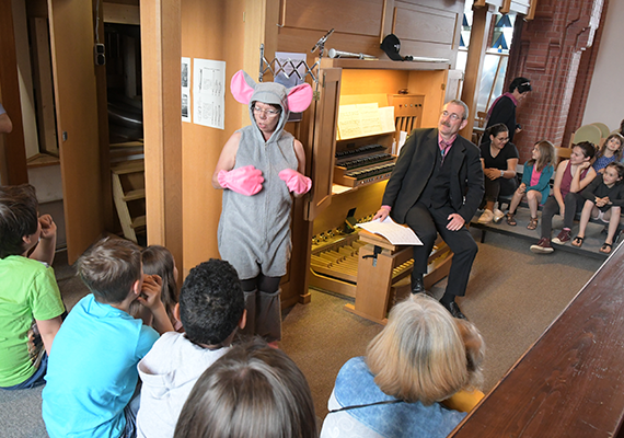 Regelmäßig werden im Rahmen von Gemeindeveranstaltungen auch Orgelführungen angeboten. Sehr gut angekommen ist die kindgerechte Orgelführung mit der "Orgelmaus". Bitte achten Sie auf die Ankündigungen im Gemeindegruss.